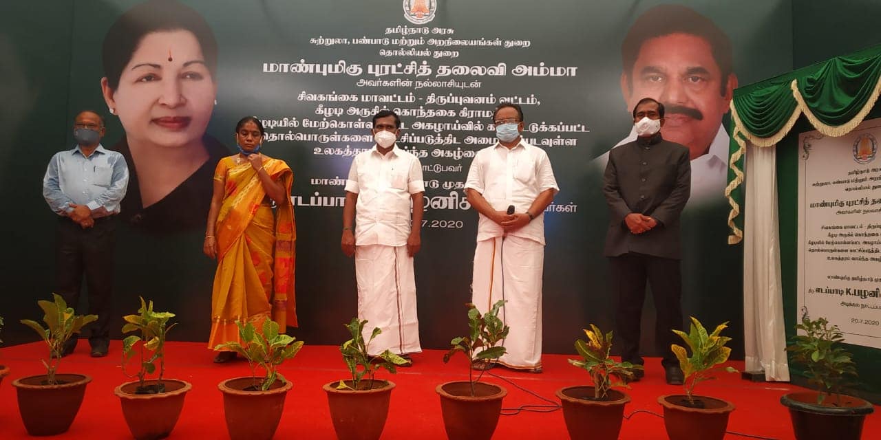 Tamilnadu Chief Minister Edappadi K Palaniswami on Monday laid the foundation stone for Museum at Keeladi in Sivagangai Dist. The museum will showcase the artefacts unearthed from the ancient keeladi site